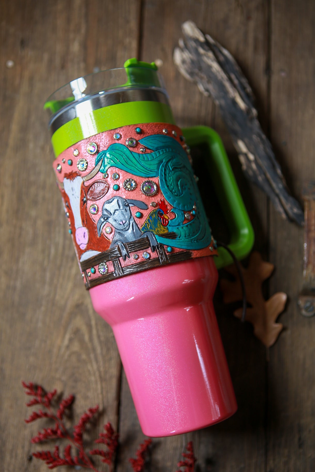 One of a kind wrap, hand tooled and painted by me!